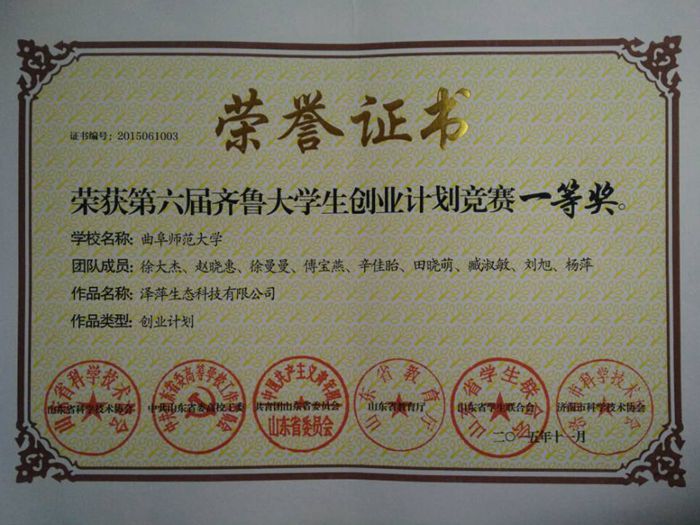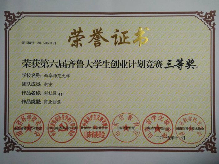 2015年11月,第六届齐鲁大学生创业计划竞赛在山东大学成功落下帷幕。