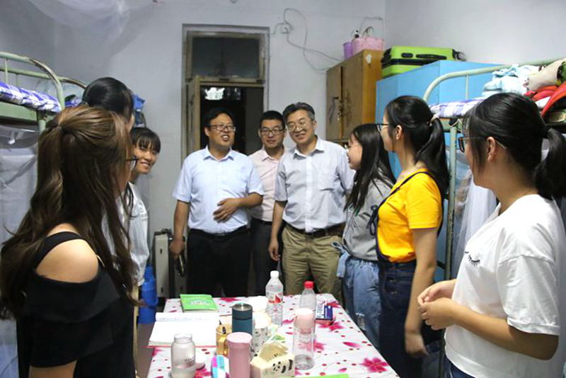 团委、学生会干部们在9月10日晚深入到宿舍看望新生,了解、检查新生安置情况,关心新生的起居、饮食、生活等情况。
