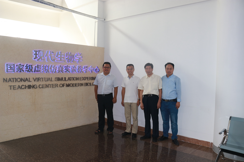 党委书记徐来祥教授、国内合作处张琳老师和现代生物学国家级虚拟仿真实验教学中心副主任姜曰水老师的陪同下参观了生科院虚拟仿真实验教学中心。该中心作为曲阜师范大学首个国家级实验教学平台,有沉浸式虚拟现实实验室、创新与实践实验室、动植物生物学虚拟仿真实验室、中心机房等6个功能区域。在参观过程中,王教授领略了360°全息投影和VR体感系统等大中型虚拟仿真设备后,肯定了曲阜师范大学及大发彩票平台