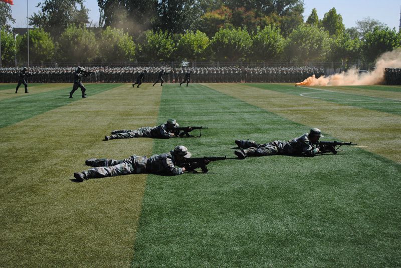 在庄严的升旗仪式过后,阅兵式正式开始。各方队排列整齐接受校长和阅兵总指挥的检验。他们笔直的军姿,嘹亮的口号,坚毅的目光充分显示出2018级新生积极向上的精神风貌。生命科学学子昂扬向上的展示出生科特有的风貌:标兵方队的倒计时动作干净利落;齐步方队和跑步方队的新兵们默契配合;擒敌拳方队动作整齐划一,一动一静铿锵有力;定向越野方队通过不同的项目表现出他们独特的风采;棍术方队虽训练不久,仍旧招式多样,澎湃大气;内务方队整理内务干净利落,充分展示出了军人的英姿飒爽;心理健康操方队则通过独特的舞蹈动作展示出青年军人特有的无限活力。经过两个周的军训生活,大发彩票平台