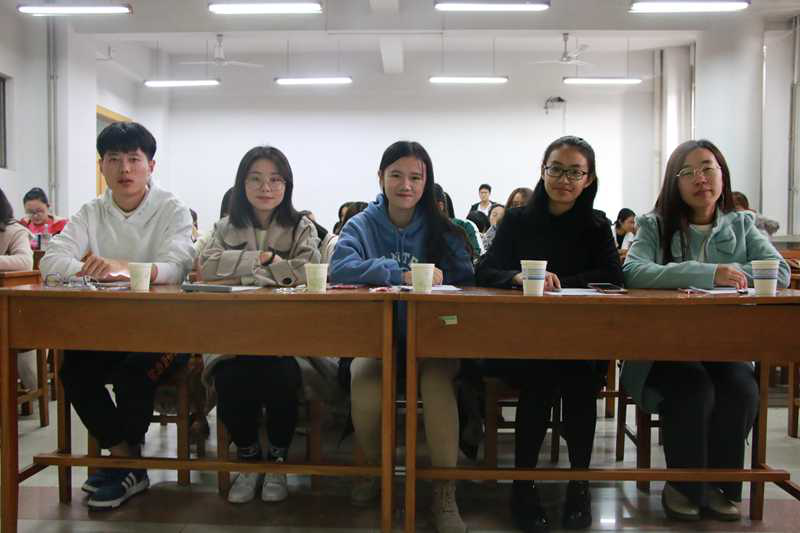 团委学生会秘书处部长高钰淇,院刊管理部部长江珊,社会实践部部长郑玉皎,宣传部部长孙梦迪,生活与权益部部长陈素阳。2017级和2018级同学都踊跃参加了本次活动。此次活动为比赛积分制,第一环节为才艺展示,各队参赛成员通过唱歌跳舞出彩的展示自己的队伍。接下来是美食PPT或视频展示,参赛者纷纷上台展示了各种各样的美食,并对PPT以及视频中的美食、推荐原因进行了一一讲解,调动了大家浓厚的兴趣,得到了众位评委们的好评;第三环节是 “你来比划我来猜”小游戏,此环节为前一环节落后的队伍创造了翻盘的机会,在游戏中,充分地活跃了现场的气氛。活动圆满结束。